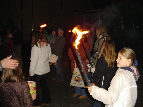 Der Umzug erfreut sich größter Beliebtheit, was sicherlich auch dem Verkauf von Glühwein, Kinderpunch und heißen Würstchen zu verdanken ist. Bei der Durchführung sind sind wir auf die Hilfe der Freiwilligen Feuerwehr angwiesen, die die Straße während des Umzugs absperrt und das Martinsfeuer anzündet und bewacht. Wir badanken uns für ihren Einsatz.